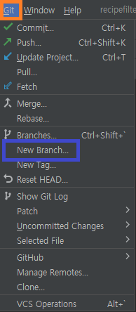 *New Branch 를 통해 새로운 브랜치 생성 가능