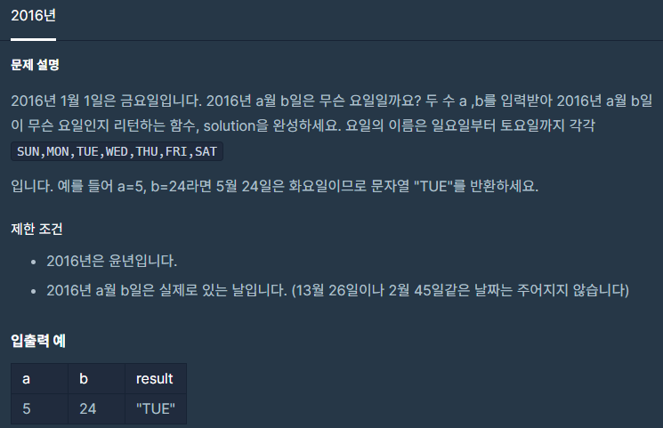 코딩테스트 연습 - 2016년