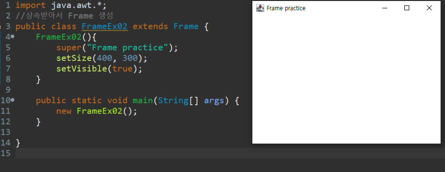 import java.awt.*; -> extends Frame or Frame 객체 생성 -> Frame 크기 설정( setSize(int width, int heigth) or pack() )