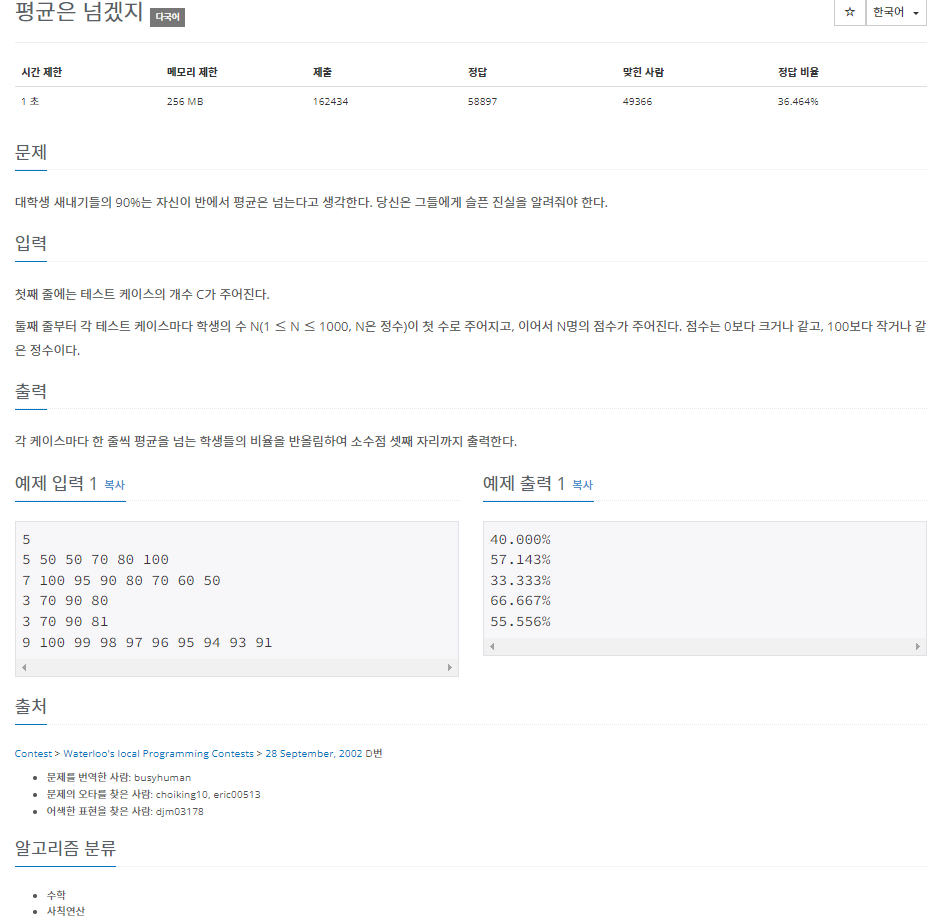 문제 링크: https://www.acmicpc.net/problem/4344