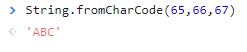 👉자바스크립트 String 메서드로 쉼표로 구분되는 일련의 유니코드에 해당하는 문자들로 구성된 문자열을 반환한다.
