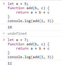 let a = 5; // a의 값에 따라 add 함수의 return 값이 달라질 수 있음