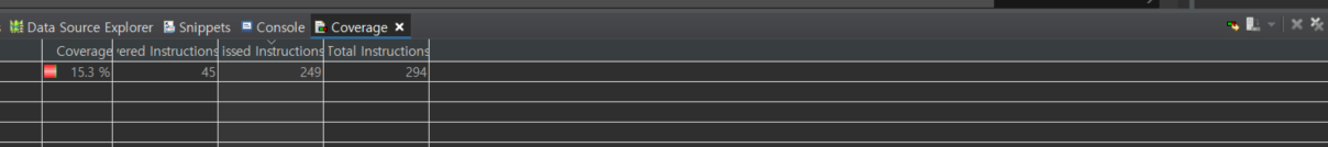이런식으로 색상이 표시되어 뭔가 했더니 Eclipse 작업 페이지 - 우클릭 Run As 위의 Corverage As 를 클릭하여 CoverageConfiguration으로 실행해서 나온거였다!