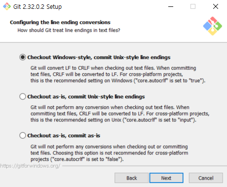 *윈도우와 유닉스의 개행방식이 달라서 문제될 수 있기 때문에 사전 설정 필요*