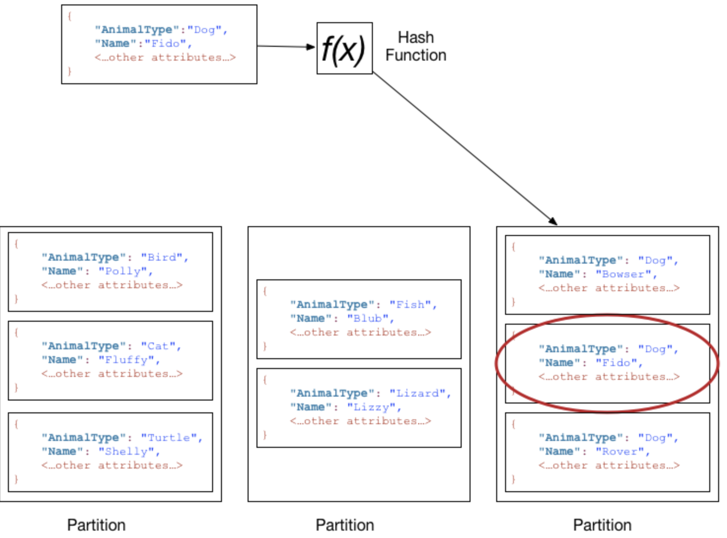 DynamoDB 내부에는 해시 함수(Hash Function)가 존재한다. 파티션 키는 이 해시 함수를 거쳐 데이터를 저장할 파티션을 결정한다.