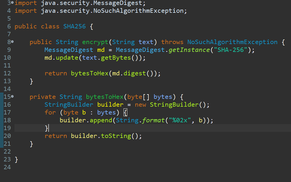 MessageDigest md = MessageDigest.getInstance(" SHA-256 ");