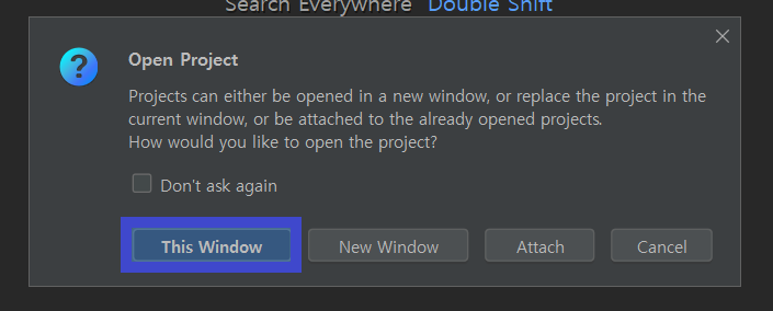*This Window: 현재창에서 프로젝트 실행