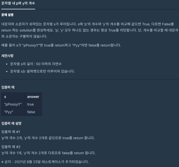 코딩테스트 연습 - 문자열 내 p와 y의 개수