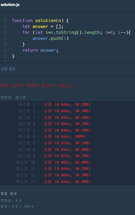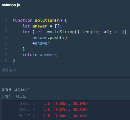 코딩테스트 연습 - 자연수 뒤집어 배열로 만들기