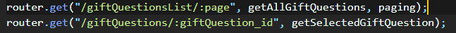 ์ด ๊ณผ์ ์์ ๊ธฐ์กด์ giftQuestions ์์ธ ํ์ด์ง์ routes๊ฐ ๋๊ฐ์์ ์๋์ ๊ฐ์ด ๋ฐ๊ฟ์คฌ๋๋ฐ,