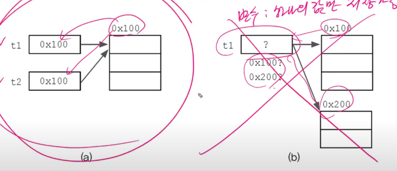 *하나의 인스턴스를 여러 개의 참조변수가 가리키는 경우(가능)