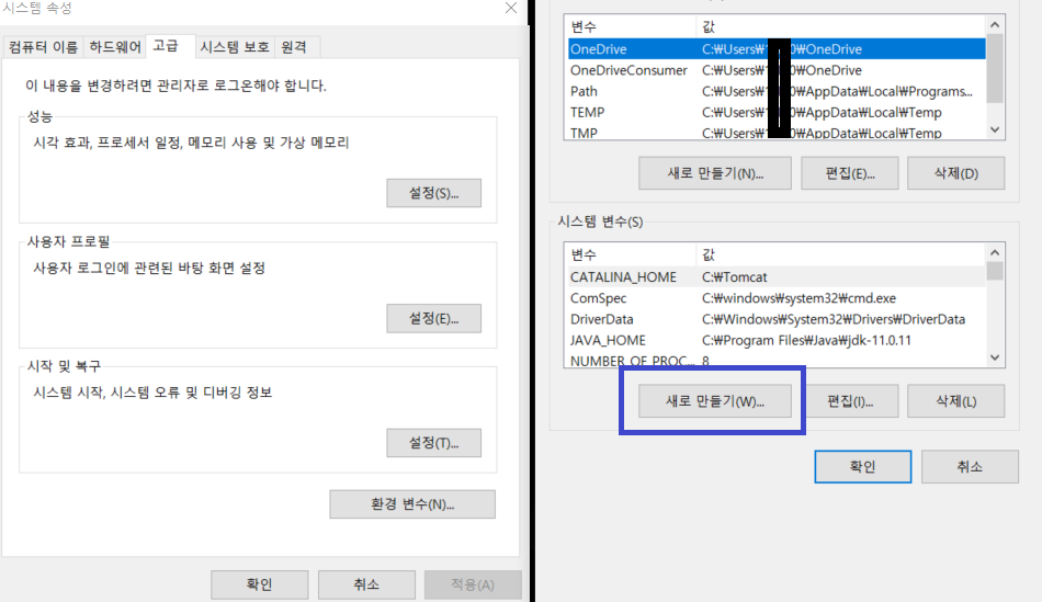 새로만들기 클릭 후 변수이름과 변수값(패키지의 루트이며, workspace를 어디로 지정했는지에 따라 경로 다를 수 있음) 넣어주면 추가됨(나는 등록하지 않음! 이클립스가 해주기 때문에...)