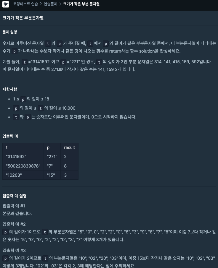 4) temp의 길이가 p의 길이와 같고, 숫자 temp가 숫자 p보다 작을 때 arr에 담는다.