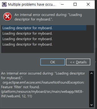 Anyway, 이번에는 xml 파일에 넣은 filter 관련 내용 때문에 에러가 발생한 것이라 해당 부분을 주석 처리했더니 잘 돌아갔다.