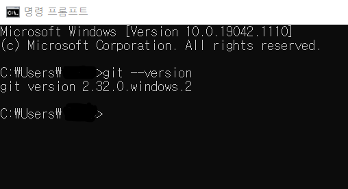 5) 설치가 완료된 후 cmd 창에 git --version 을 입력하면 아래와 같이 최신버전으로 설치된 것 확인 가능하다.