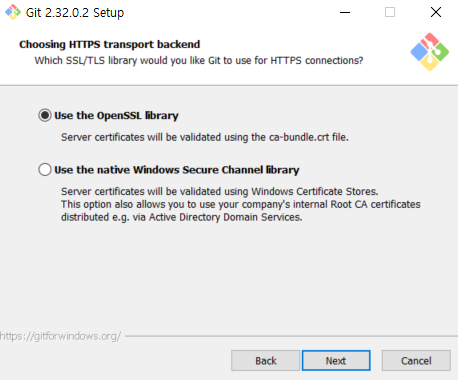 *Use the native Windows Secure Channel library: winodws 인증서 저장소 사용