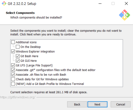 *vs code 도 같이 사용하는 경우가 많던데 git 초보이기 때문에 일단 기본 셋팅된 내용으로 설치 진행함..!
